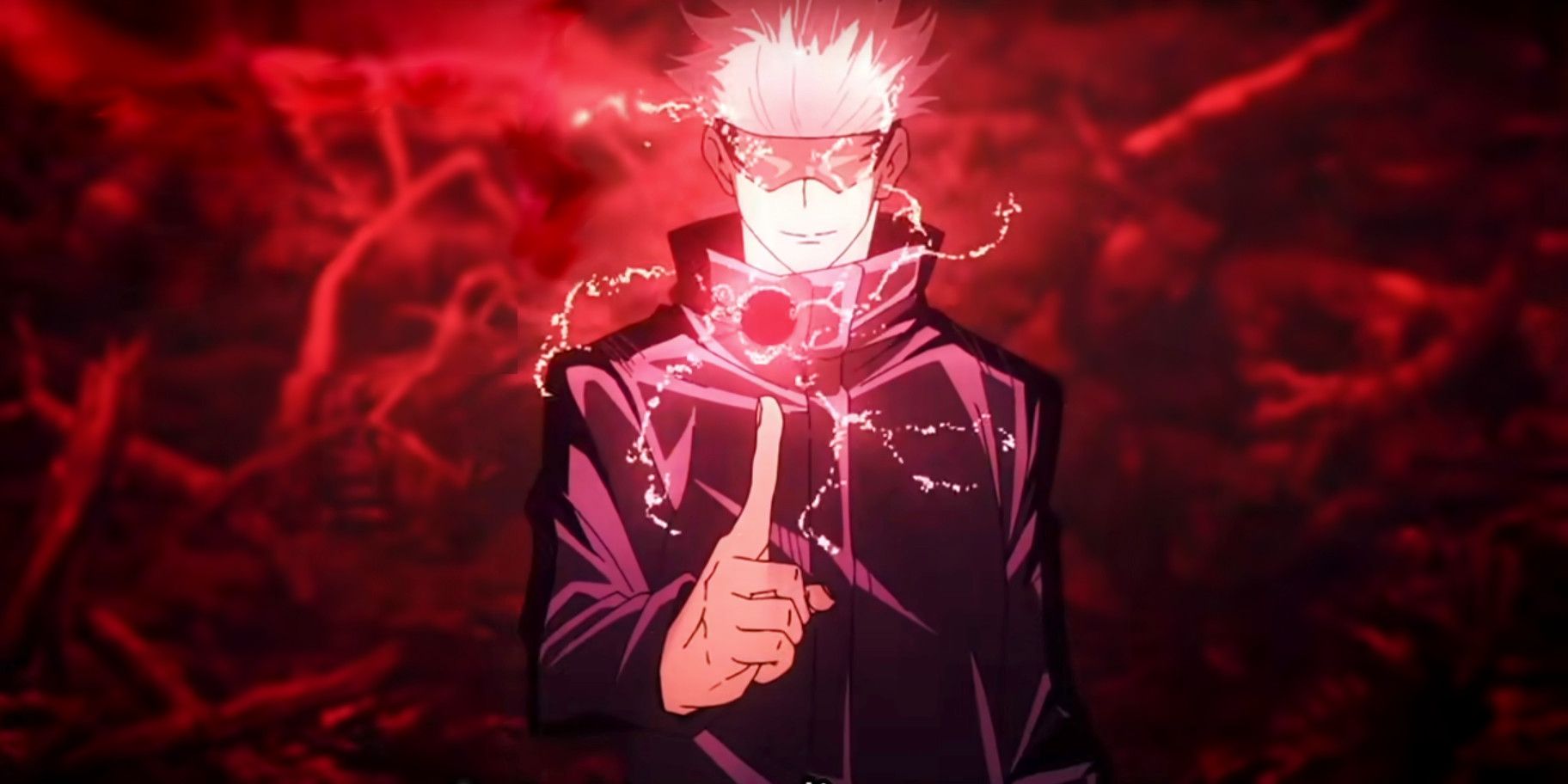 If Blue is a vacuum that pulls, Red is a divergent force that pushes. It manifests as a high-powered repulsion blast. In the logic of Gojo’s power system, Red is the manifestation of the “divergence” of infinity. It functions as a kinetic output module, capable of clearing entire sectors of data (or enemies) with a single focused discharge.